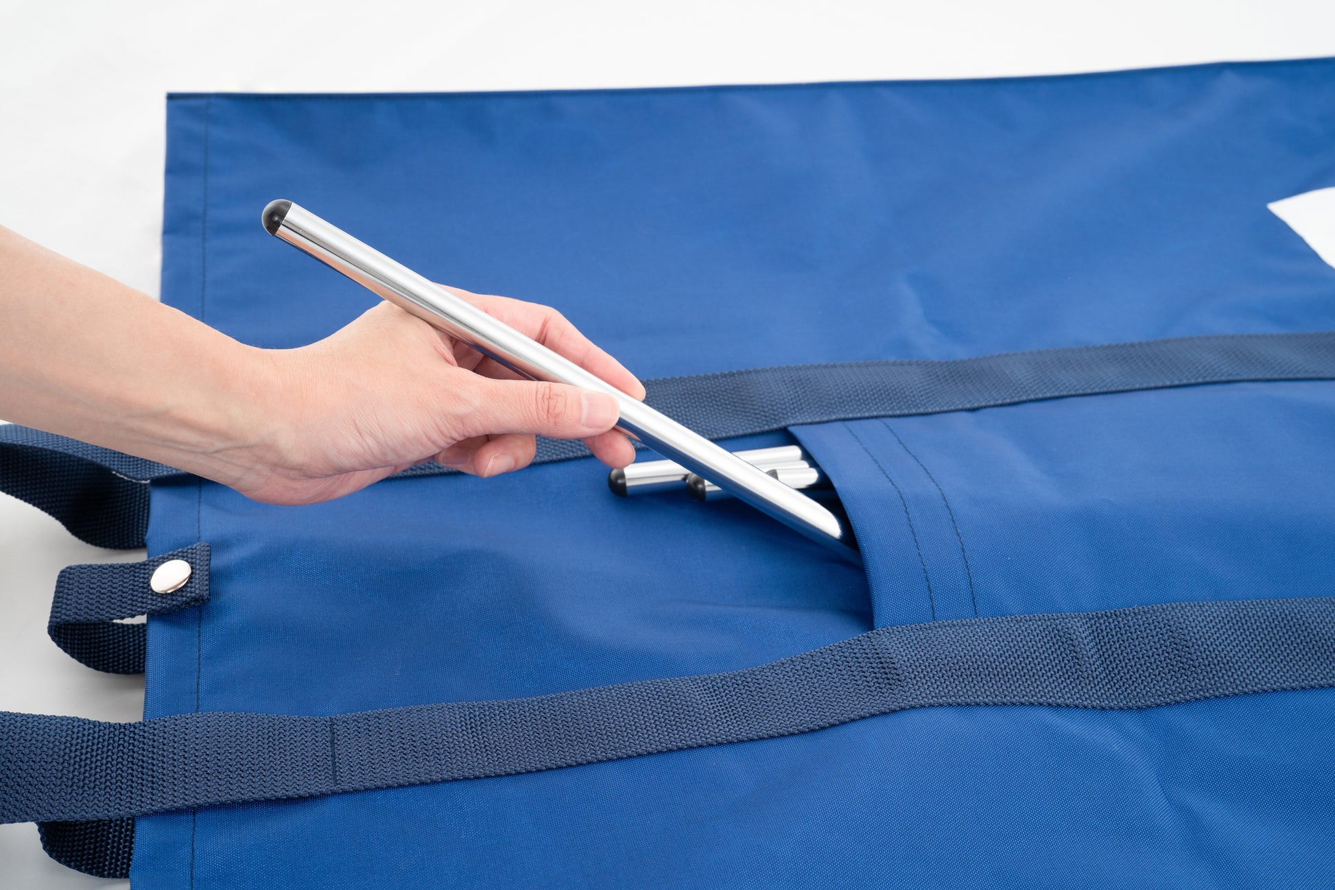 表のポケットに銀色支柱を収納できます。